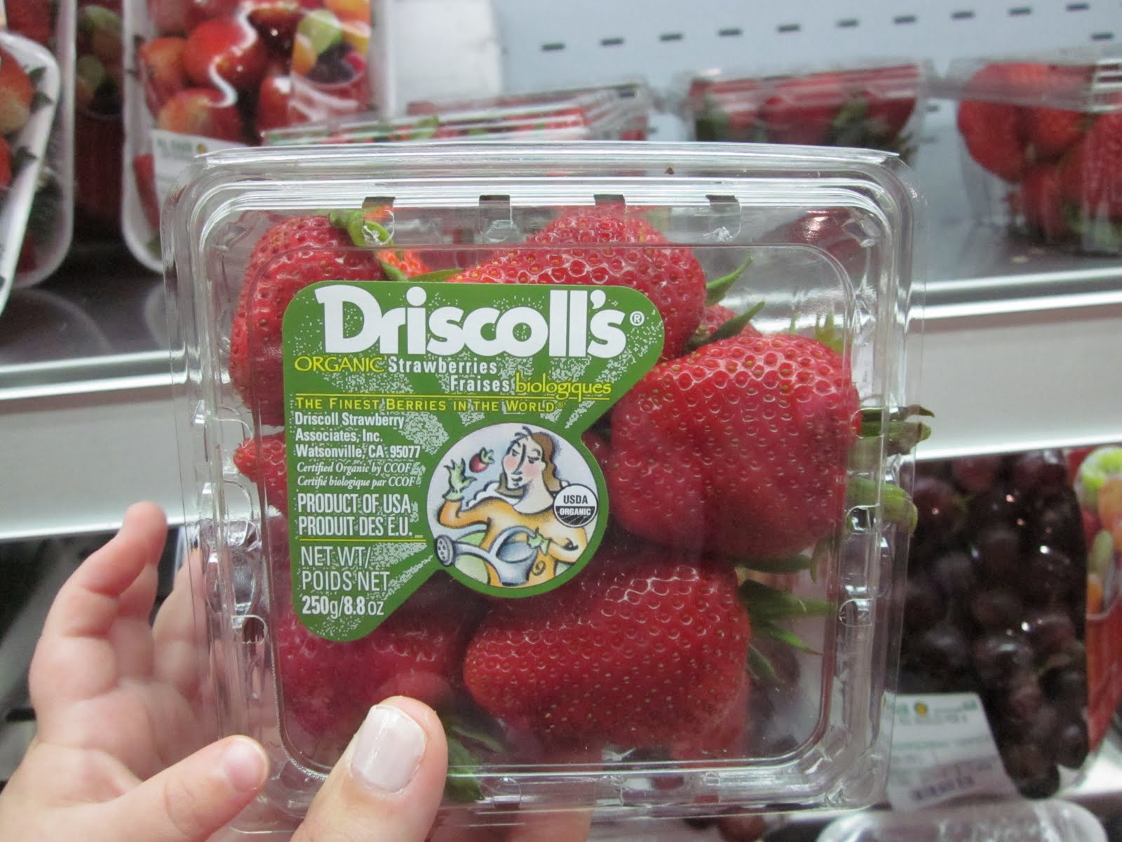 but we can still buy local strawberries! Yep, halfway around the world in a grocery store in Muscat, they have Driscoll strawberries, grown in Watsonville, CA.