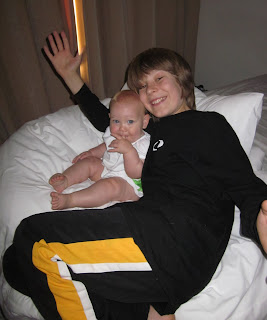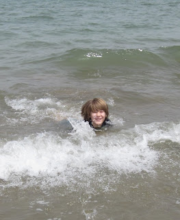 Camille loved watching her brothers jump in the waves. The noise of the waves makes it hard to hear, but she was laughing and giggling at Caleb as he splashed around.