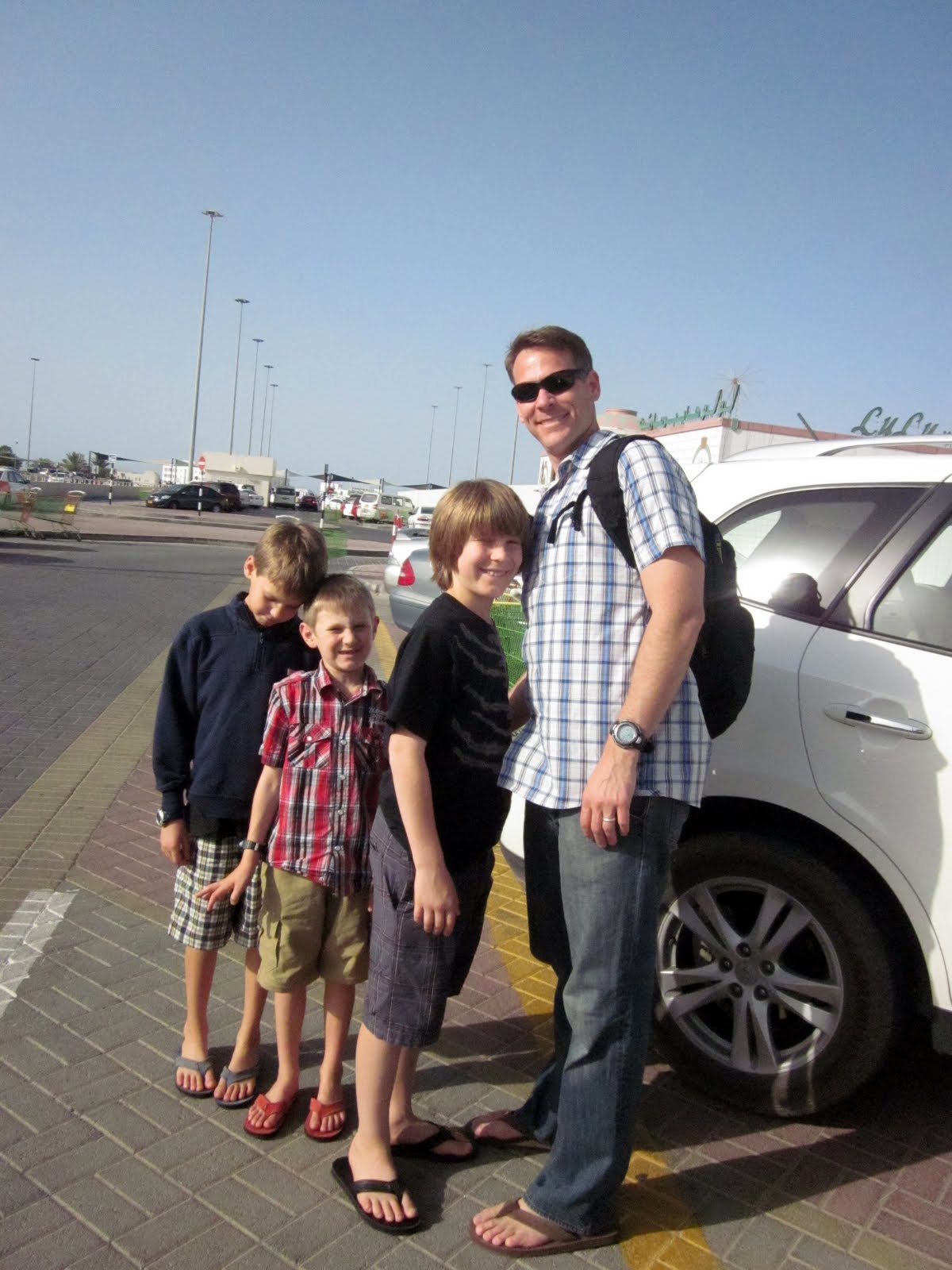 Our goal was to keep everyone awake until 8pm so around 4 we headed out to run a few errands. We went to Lu Lu’s hypermarket which is like Super Wal-Mart. The bottom floor is all groceries and the top floor has electronics, clothing, appliances, etc. I’ll have plenty more to say about Lu Lu’s another time, but for now, this is what our kids thought about this shopping trip.