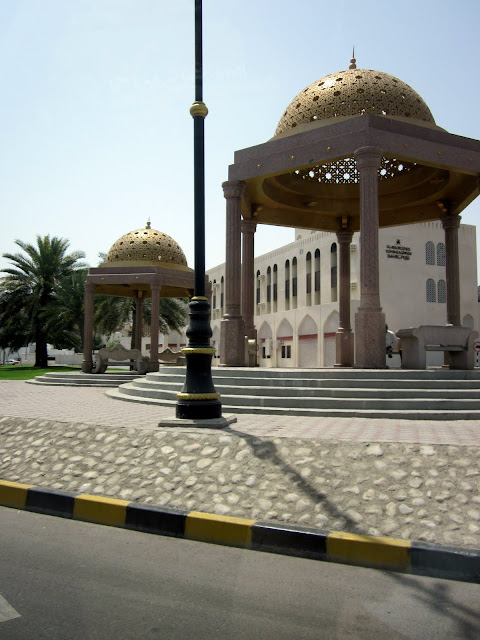 The mountains/hills here are just like what we have in 29 Palms. Josh and I agree that Muscat feels a lot like old town Palm Springs. It’s more exotic than Egypt, but it feels more familiar. We were driving around and aside from the domed structures and the sultanesque flair to the buildings (most windows have an Aladdin-like shape), we could be in America. Except the roads here are better and most of the cars are nicer.