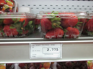 The other brand of American strawberries (I have no idea where they are grown)  are more white than red and just as expensive. Good thing I ate loads of strawberries while we could still afford them — straight from the fields!