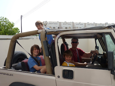 our second (third) car. In Egypt we would have been fine with no car at all, but in Oman we quickly realized that it made sense for us to get a second car. So Josh scoured the classifieds and the job board at Al-Fair market for a car that was in our price range and found this beauty. A 1995 Jeep Wrangler that has been embedded with half of the desert sand in Oman. I don’t think the A/C works either, but that’s sort of a moot point when your car doesn’t have any sides or roof. The boys love it as much as Josh does, especially since it makes them feel like they’re the A-Team. They scramble over the sides of the jeep and argue over who gets to be Face that particular day.
