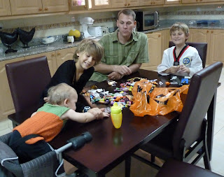 Picking through the stash at home. Camille wanted to make sure she got her share of the loot. I made sure the boys knew how lucky they were cause back in the olden days when I was a kid, I didn’t get to eat my Halloween candy. We would dump it all in a pile and each of us could pick out 3 pieces to keep. The rest was “thrown away.” I found out later that mom kept a stash, Kristy kept a stash, Carrie kept a stash, and knowing Wendy, she probably did too. I’m the only one with Halloween = no-candy memories.