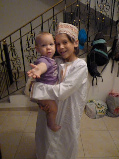 In between lunch and Project Runway: Halloween Episode, Josh and I headed back to school to watch the Elementary School talent show. None of the boys were in it, but they wanted us to come watch it with them. Of course they didn’t sit with us, or hardly talk to us, but Josh and I drank cappuccinos and watched the show so it was almost like a date. Except for the squirming toddler on our laps.