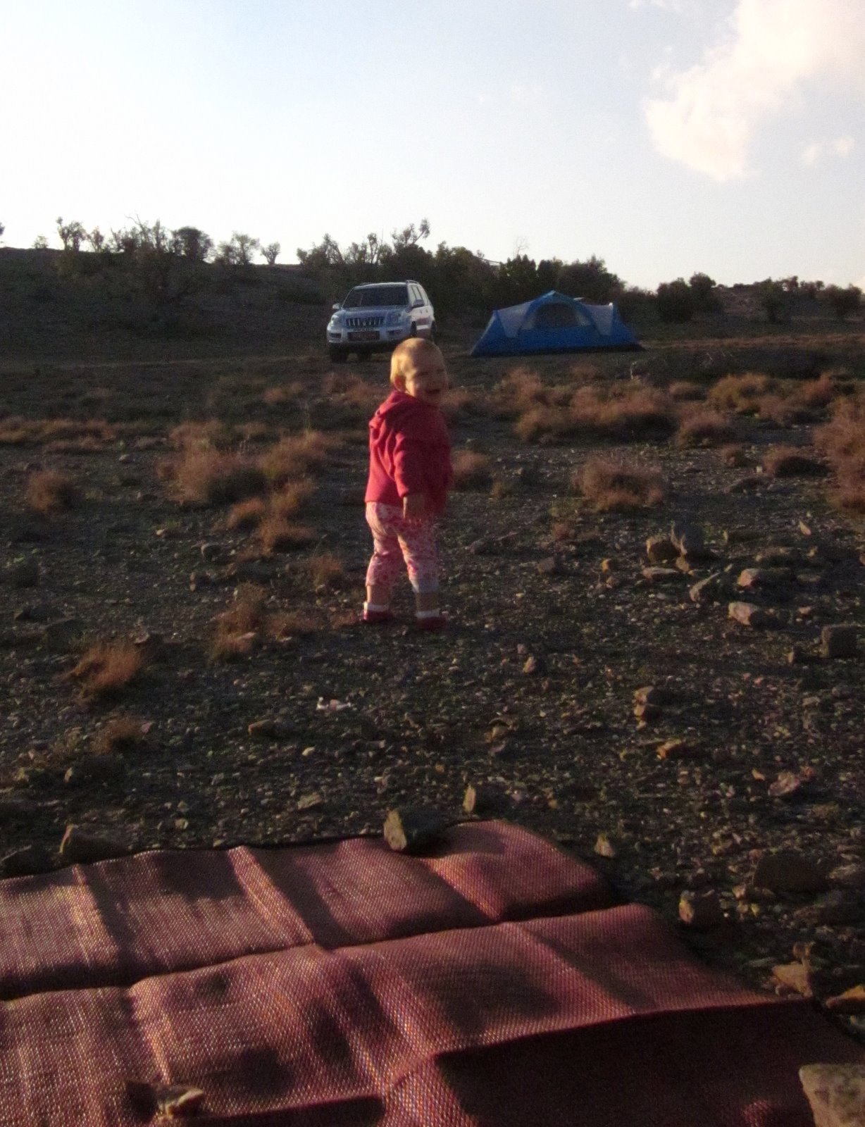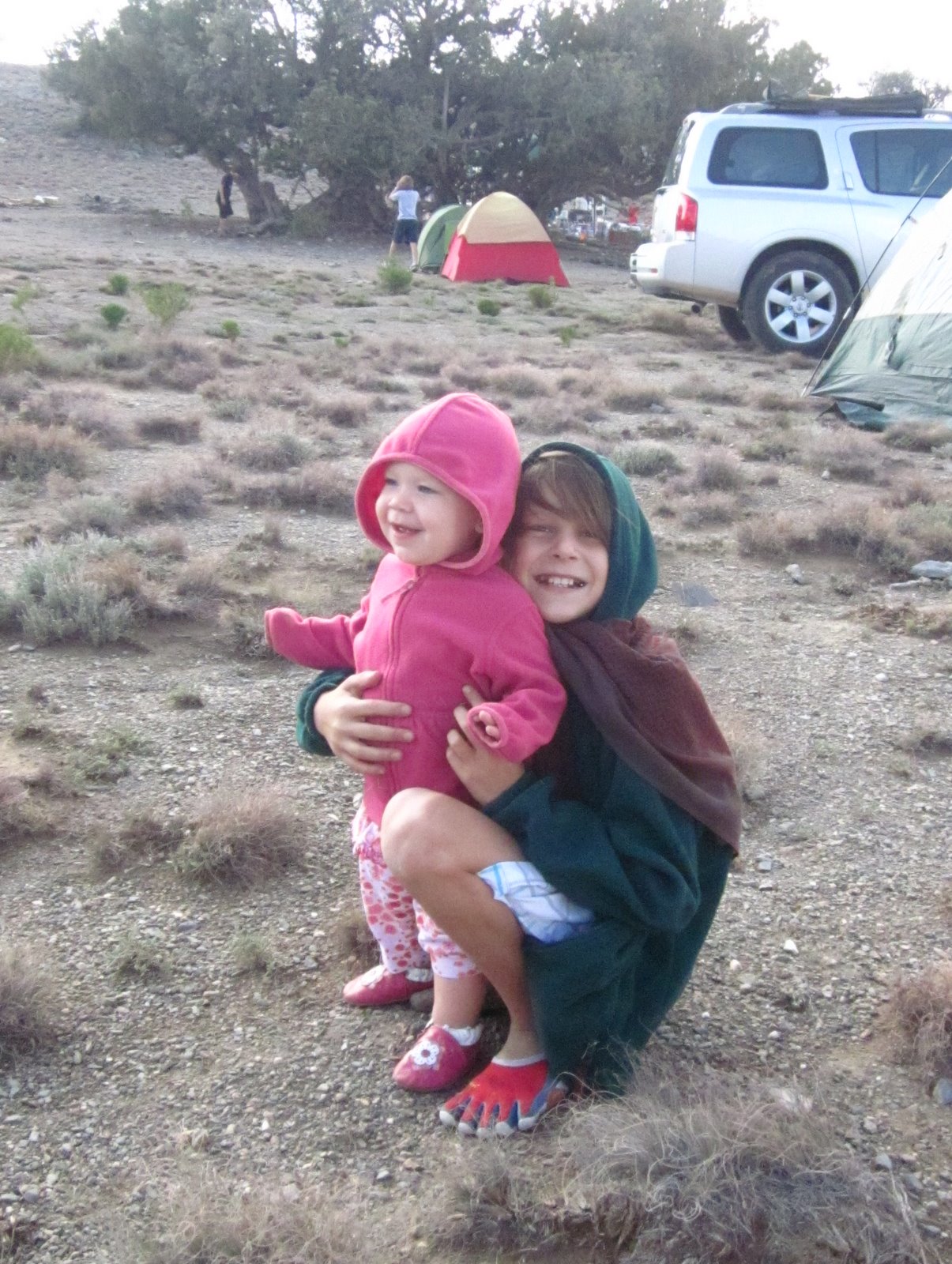After a lot of bumping around in the car we made it to our campsite by early afternoon. It had cooled to about 60 degrees at that elevation and Caleb was happy he had his blanket.