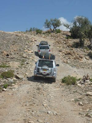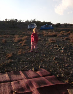 Eventually we pulled off the main road and started to drive even further into the middle of nowhere. On the way we passed other campers (Carter was impressed that the abaya wearing lady was helping to set up a tent). Legally you can camp anywhere in Oman. You can even pull off to the side of a highway and throw up a tent. We were heading somewhere a little further off the beaten path. We had GPS coordinates and were following friends who had camped in this particular spot before.