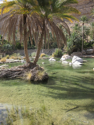 When we left off, happy family was in the desert on their way to Wadi Bani Khalid. After a 40 minute drive back across the sand dunes we stopped to reinflate our tires (you have to let about 1/2 of the air out prior to driving on the dunes or your car will sink and get stuck in the soft sand). While they were putting air back in the tires I saw this sign across the street: