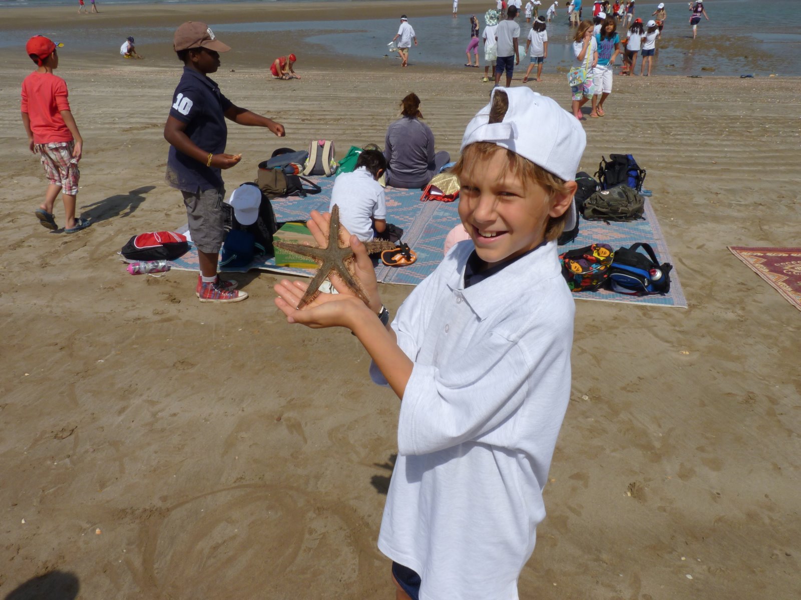 Once the tree planting was finished we all went across the street to the beach to eat lunch. Carter found a huge (live) starfish in the water. He has the sharpest eyes. When he was a toddler he was always spotting tiny specks of airplanes way up in the sky — he’d shout out “pain! pain” and we’d have to hunt and squint until finally we could see the minuscule spot of a plane cruising at 30 thousand feet. It comes in handy daily when I have to ask for his help finding my keys, finding his brother’s shoes, finding my shoes . . .