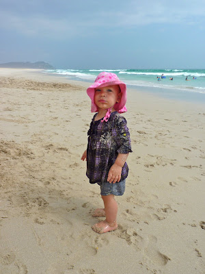 The waves were fantastic and the water was warm. Josh was really wishing he had his surfboard, but he had a good day of boogie boarding instead. And yes, I went swimming too. I bribed a kid to watch Camille while I swam with Josh. After catching a few waves I was hooked and went to get the board. I love that we could swim in February without wetsuits.