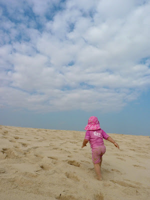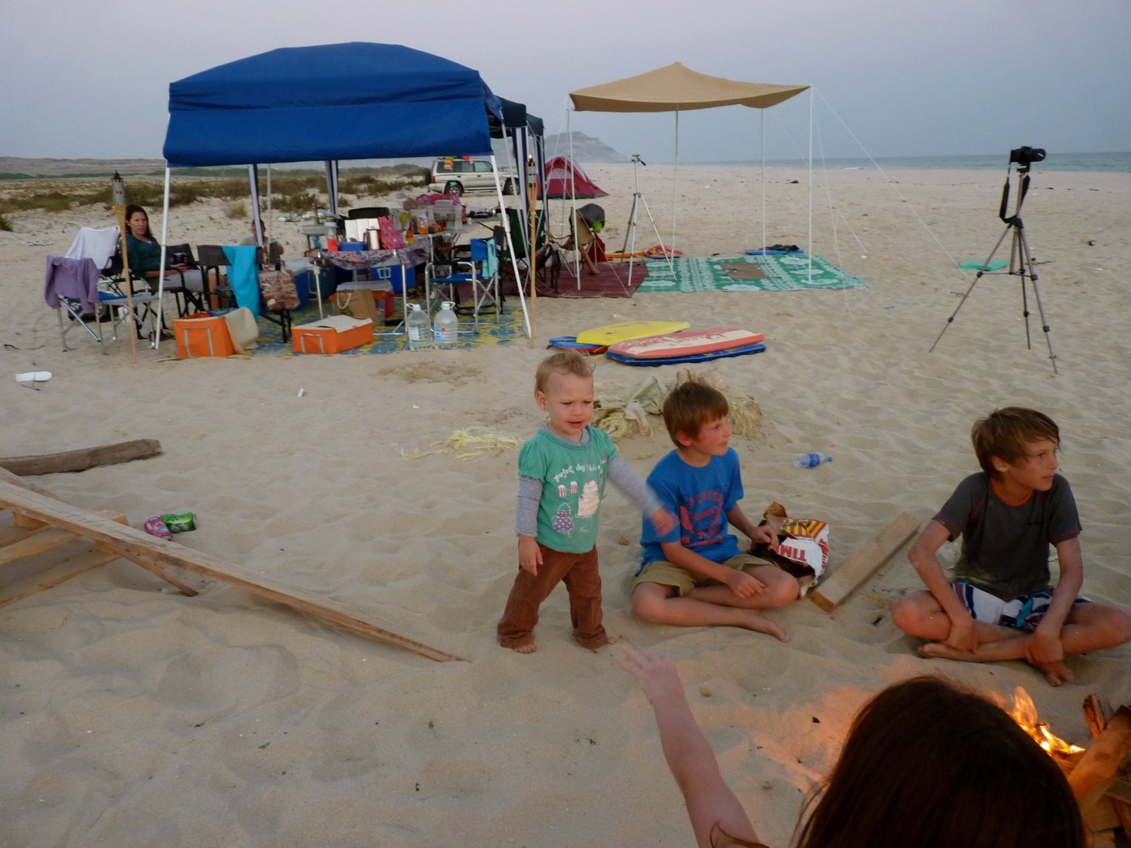 Halfway through the night, the quiet rolling of the waves was marred by a rattling, whipping sound. The winds had picked up and the rain flap on our tent was trying to fly like a kite. Josh went out and took it off, but by that time the entire tent was vibrating with every gust. The kids slept fine and I slept fine once I could get the noise out of my head long enough to fall asleep, but we woke up to an entirely different beach.