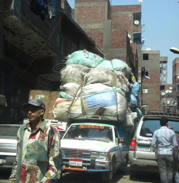 The first time I heard about Garbage City was from a friend who was trying to encourage me as I lamented about the trash that we walked through, around, and by as we walked the neighborhoods in Maadi. I told her there was nothing that made me want to reduce my personal waste and recycle as much as possible as seeing the mountains of trash on the street. She told me that she had been to Garbage City (a neighborhood on the outskirts of Cairo) which handles much of the city’s trash and although it looks like a lot of trash, about 80% is recycled. In comparison, the US has recycling rate of only 30%. She said we could go and see mountains of shampoo bottles, piles of glass and mounds of scrap metal as big as my living room. Anything useable is saved or repurposed, such as melting down plastic to make the soles of shoes. They also make handicrafts and sell them (like quilts from material picked from the trash). They are fastidious about salvaging useful materials because their livelihood depends upon it.