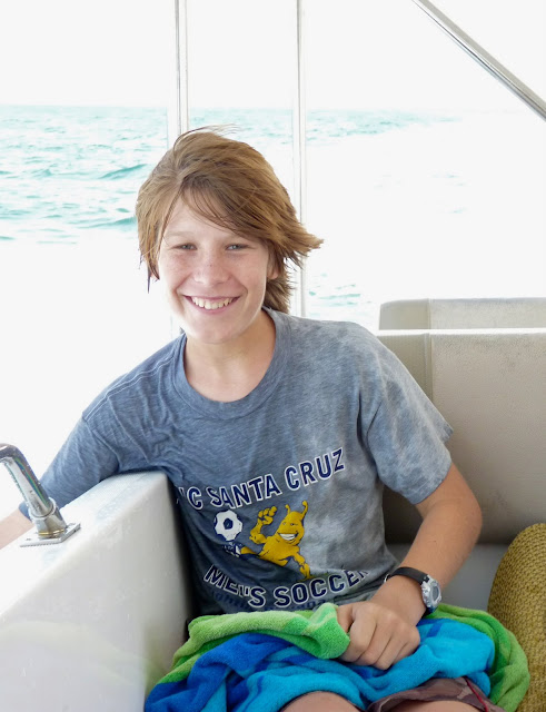 As we packed up to leave the boys were having fun hanging off the bow of the boat and dropping into the water.