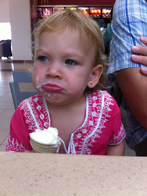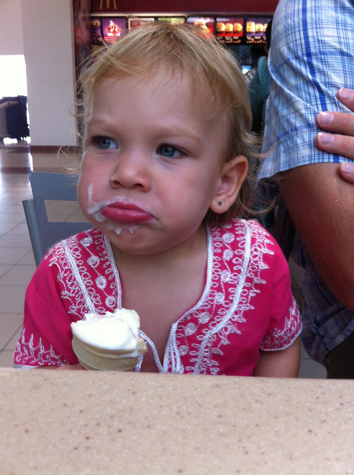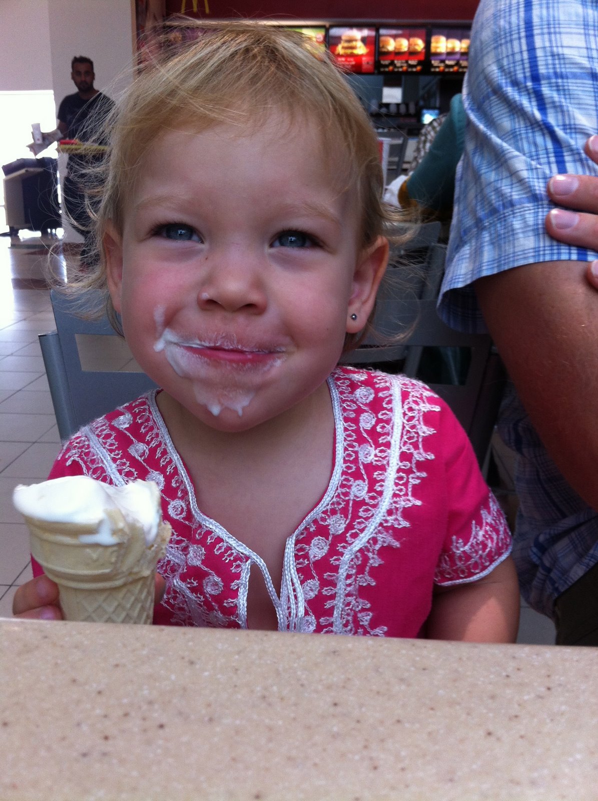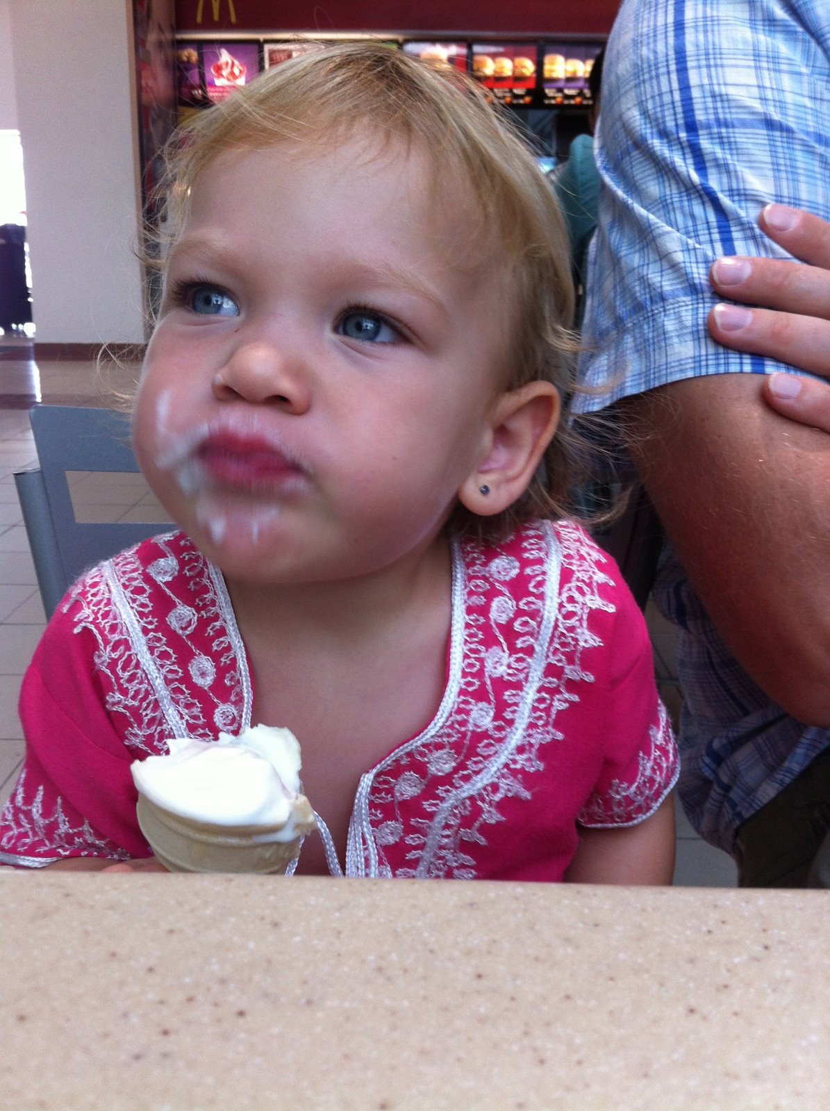 So we took her along when we went to the embassy to check mail (and she explored the ground floor while Josh went up to his office) and then we took her to the mall so she could run. And since she’s the baby of the family she got ice cream.