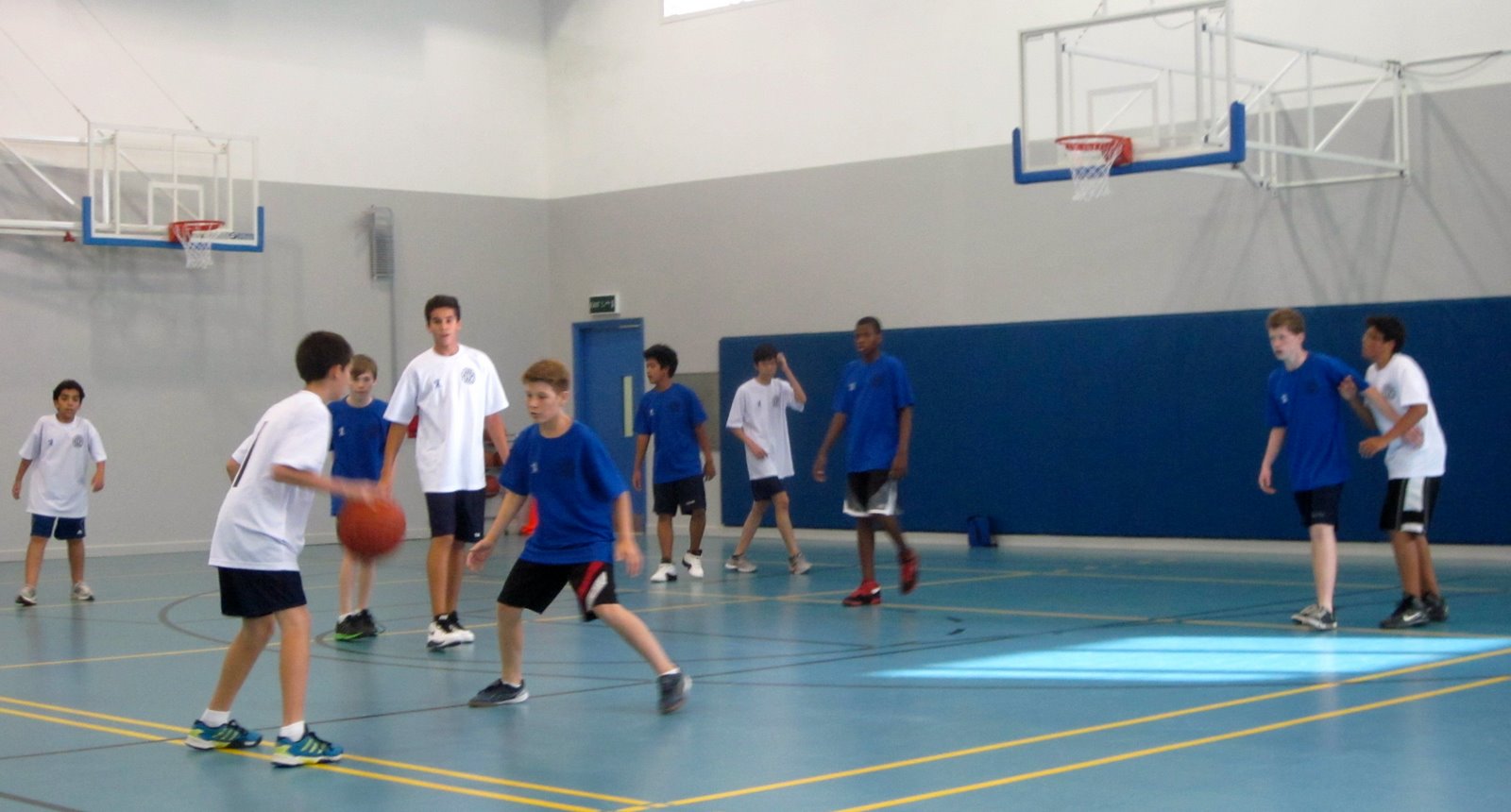 This game was a scrimmage among the TAISM 7th & 8th graders. They divided into 4 teams (blue/red/white/gray) and played 20 minute games Round Robin style.