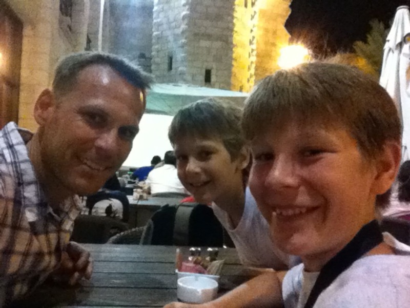 While I’m waiting for something interesting to happen (since 4 of us sharing 2 sleeping bags on 2 twin beds in the middle of piles of boxes isn’t of interest), I have several of Calvin’s trip reports to share. He wrote them from his iPod touch (which is an impressive feat of patience) and then they all were emailed to me automatically at the end of the trip when he connected to the airport wi-fi on the way home. These cover their travels around the country, excluding their time in Jerusalem. I’m hoping I can convince him to write a few more about their time in the Old City and at Masada.