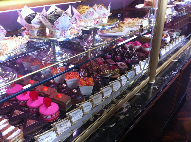 My favorite was the chocolate dome with the gold ball on top. Inside the chocolate dome was cake, custard filling, more chocolate . . . it was divine. The triangle cake on the left and the hazelnut trifle on the far right both rocked too.