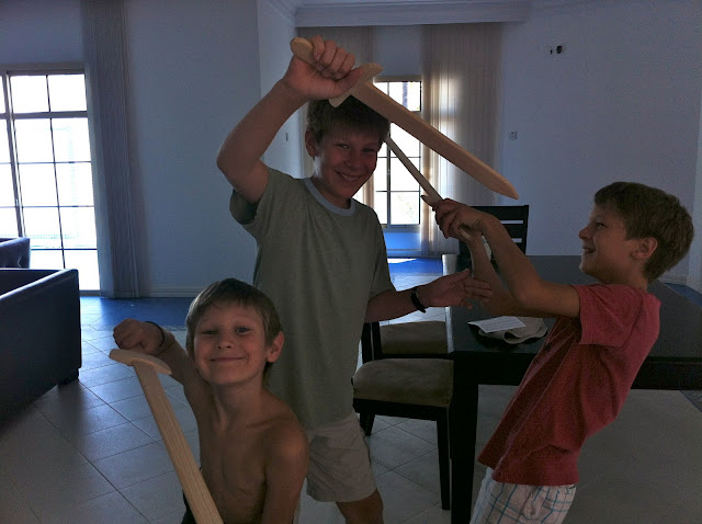 But now he’s home and I have another body to add to our dog sitting/Camille sitting rotation. Whew! On the downside, he brought home these wooden swords that have not added to the state of peace and quiet that I’m hoping to attain in our home. (I’ve always liked to make goals that are impossible to reach.)