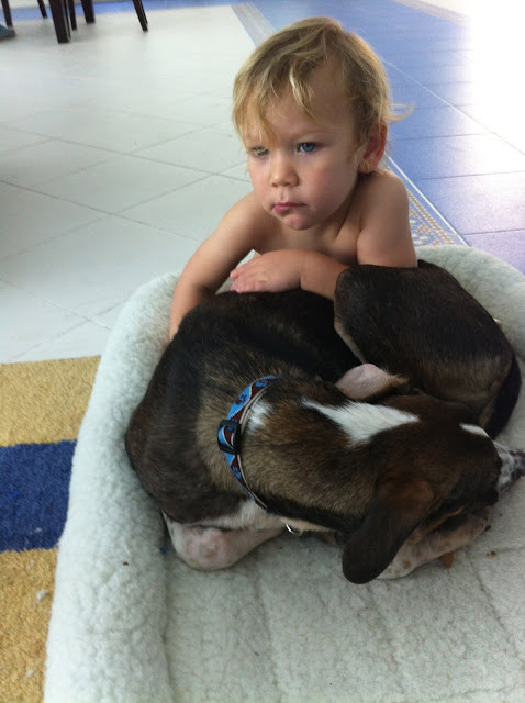 For starters, I knew that I would be taking care of the dog. I didn’t buy into any hollow promises of, “We’ll do everything!” or make them sign any weird contracts (ask Dave and Pam about that one), I knew that as a mom I’d be cleaning up after the dog the same way I clean up after all of them. Heck, they can’t even remember to flush the toilet half the time, I’m not expecting them to take full responsibility for a living creature. But I didn’t think my full time job as Dog Mother would start on day two. I figured I’d get at least seven days before the novelty wore off. I agree, it is hot outside, but the dog still has to be walked, he’s going to poop and it has to be picked up and thrown away, and I can’t watch the dog, the toddler who loves to poke at the dog’s eyes and play with his ears every time I turn my back, and feed starving children all at the same time. I’m awesome, but I’m not super-human.