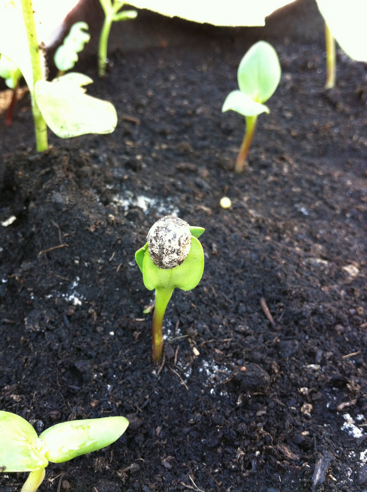 My garden is exploding! Seeds are sprouting, veggies are budding and fruiting, and vines are flowering. This is my third planting of sunflowers that started popping up yesterday. So far they have been safe from the birds, even when other plants haven’t been as lucky. Maybe the birds know if they leave them alone they’ll end up with tons of seeds to eat?
