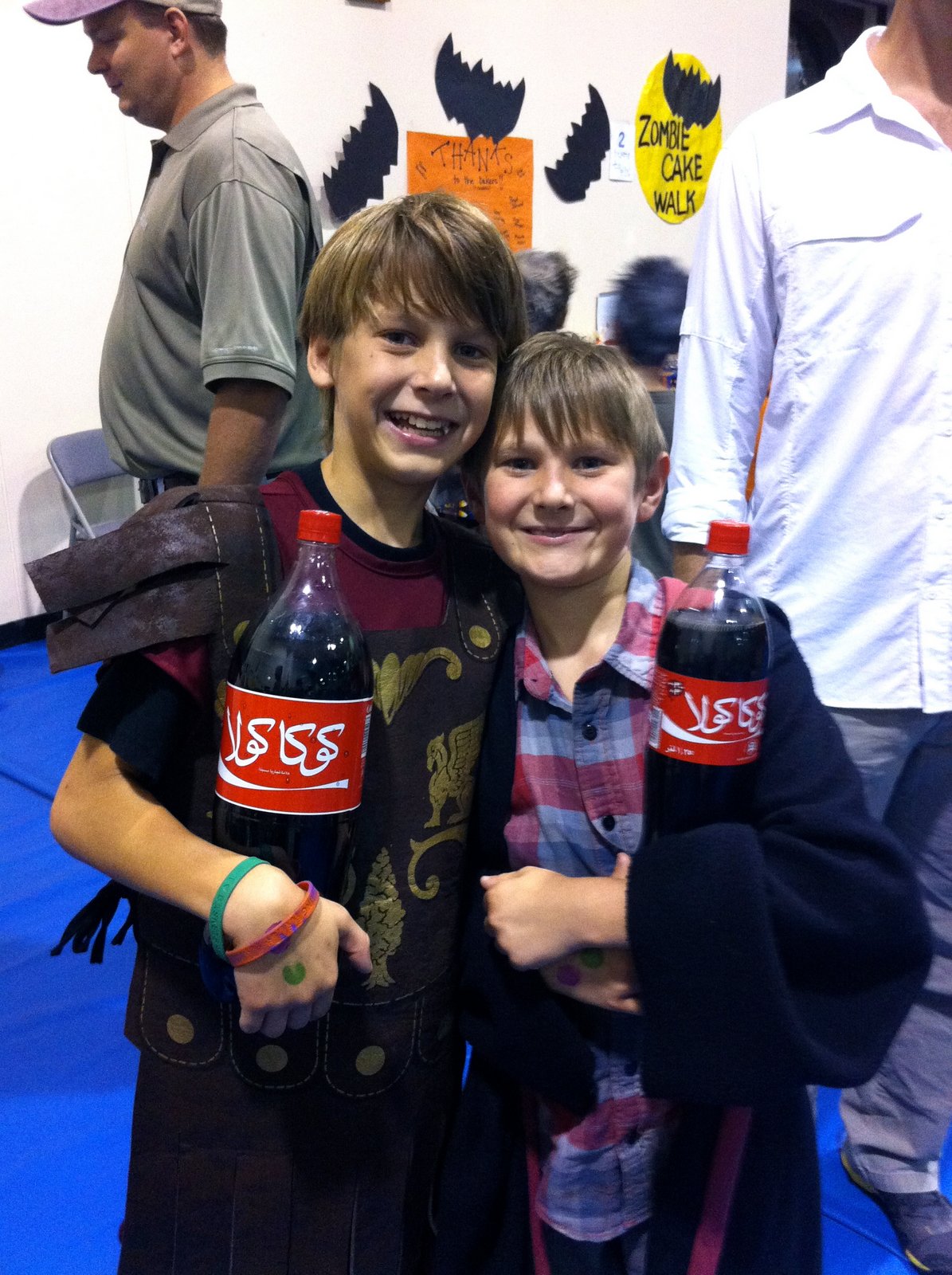 At the Halloween Spooktacular (sponsored by the school) the boys all wanted to play the ring toss game to win two liters of soda. Cause you know we’re a huge soda-drinking family and could use a few extra two liters around the house. The idea was to throw the rings at a wall of soda bottles and if you landed one around the neck of the bottle, you won it.