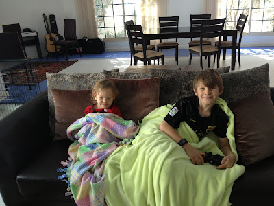 A few minutes later mom on the bike was back with 3 very sweaty children. What had they been doing? Working out in the neighborhood gym. When she peeked in the room the 3 of them had their shirts off, running on the treadmill, tossing and catching medicine balls, and hula hooping. They couldn’t hear everyone calling for them because they had the treadmill turned up to 18. Good grief.