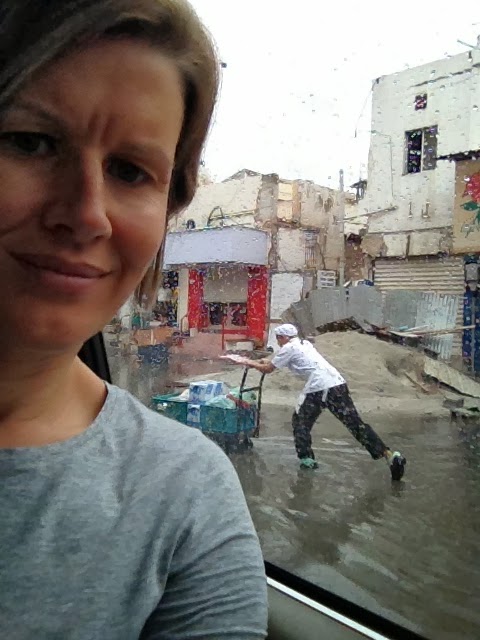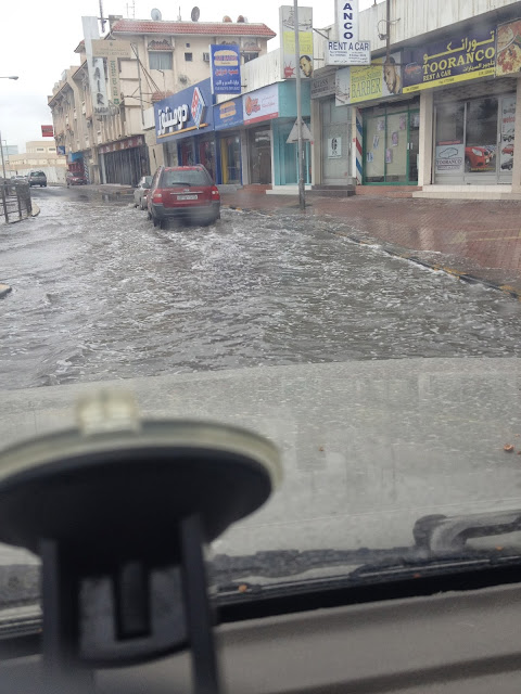 Rain in the Middle East is amazing because it’s as if the mothership came to visit and dropped tiny alien beings from the sky. From the way people drive, you know it’s alien. Dodging puddles like they’re the Wicked Witch of the West and even a drop will cause them to melt, driving 20 miles an hour, hunched over the wheel like my grandma, and a general puzzlement over all this wet stuff. And we’ve got a lot of it.