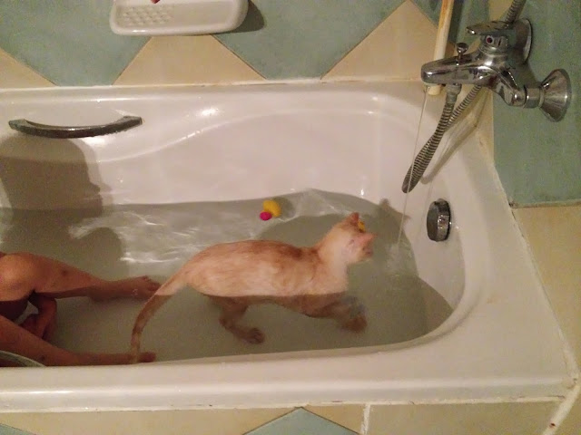 As a followup to the previous post, I quarantined the cat in the bathroom with his catbox after I discovered the cat pee on the bed. I figured he could stay in there until he figured out that he could actually use the new litter. Yes, I know I’m supposed to change to a new litter gradually, but I think the cat needs to get over it and use it. I don’t have time to baby a cat.