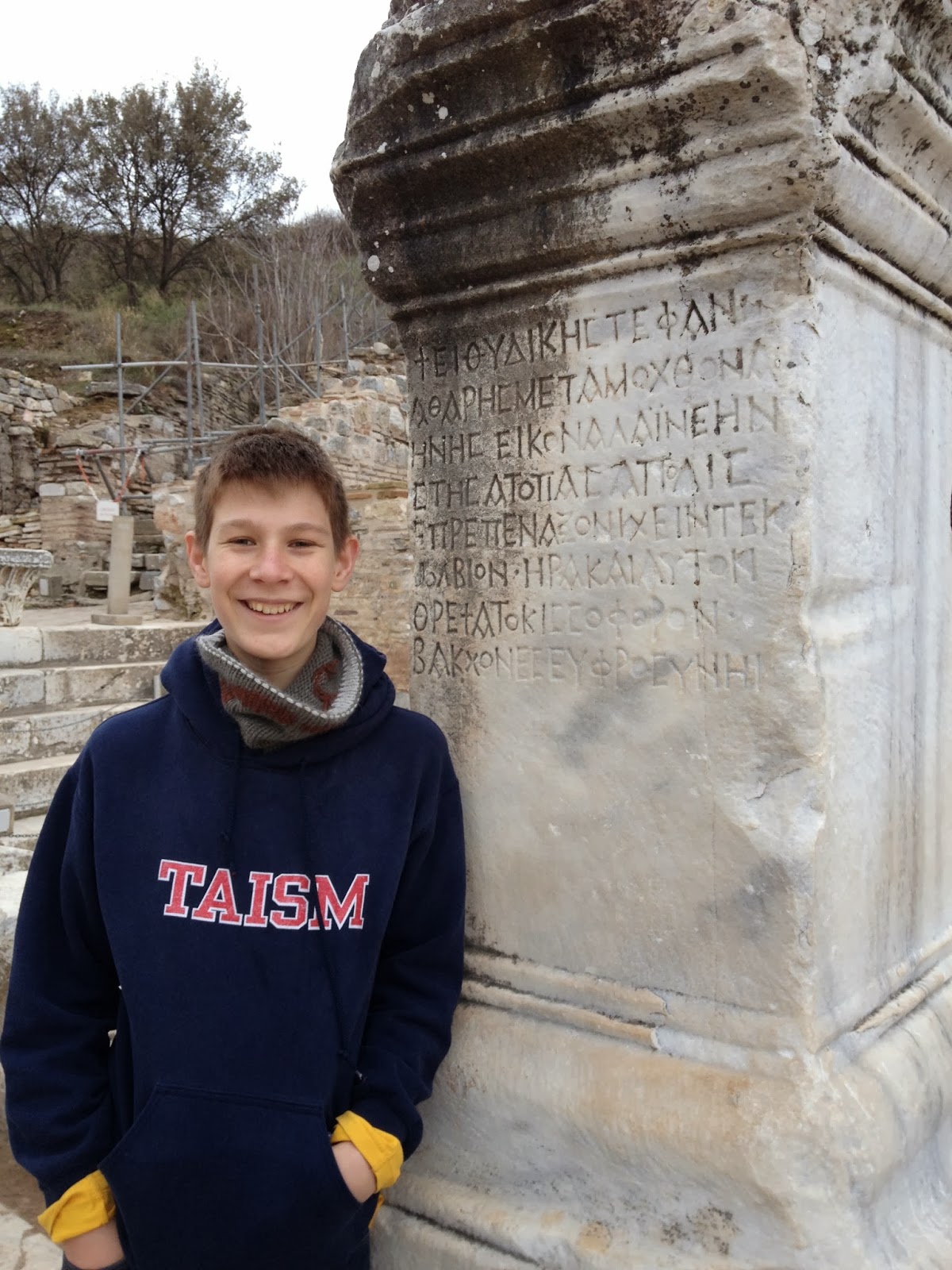 At the amphitheater featured in Acts 19 (Caleb was too busy running up and down all the steps to pose for a photo).