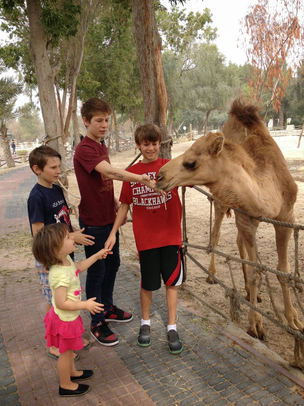 I think my favorite thing that we did while Mom was here was a trip to the wild animal park. The best part about this place is it’s nothing like a zoo in America because you can get up close to the animals. I learned a trick from the Bahraini families last time we were here: bring bread to feed the animals. Seriously. That’s a thing here. The animals hear the plastic bag rustling and come running up to the fence.