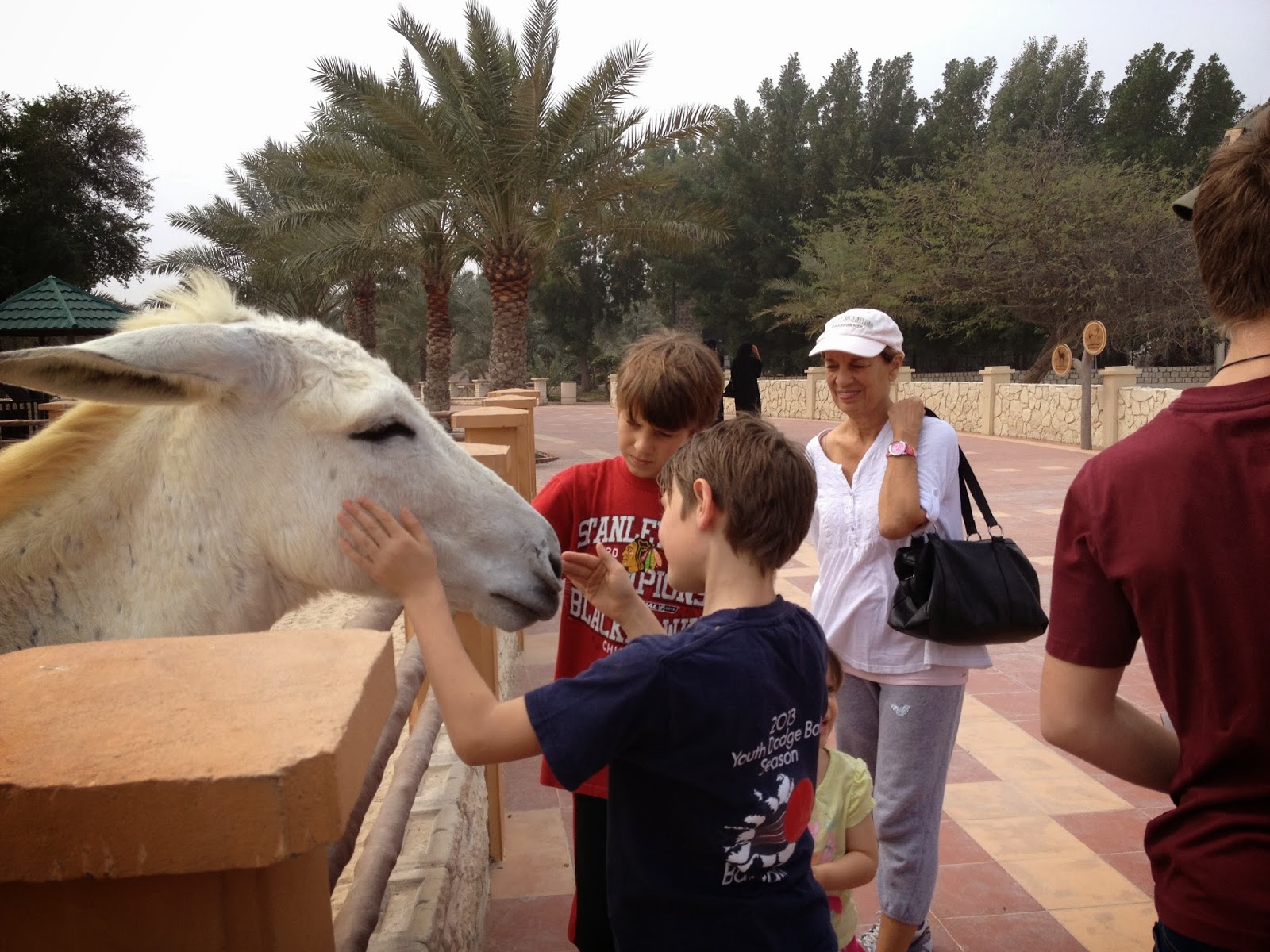 I think my favorite thing that we did while Mom was here was a trip to the wild animal park. The best part about this place is it’s nothing like a zoo in America because you can get up close to the animals. I learned a trick from the Bahraini families last time we were here: bring bread to feed the animals. Seriously. That’s a thing here. The animals hear the plastic bag rustling and come running up to the fence.
