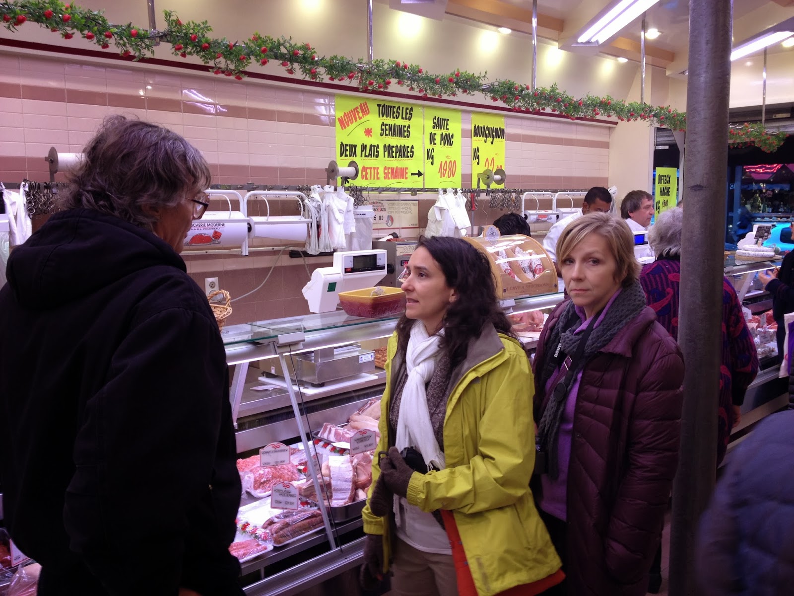 Say cheese! We next headed across the street to the fromagerie (cheese shop) and CP told us all about French cheese: the hundreds of varieties, the 5 major types, the difference between raw milk and pasteurized milk cheeses, and then he selected a few different ones for us to try later that evening during the cheese course. We also sampled an aged parmesan and he pointed out that the best ones have crystals in them which are the aged milk proteins. It takes at least 18 months for the crystals to form and is the sign of a well aged cheese.