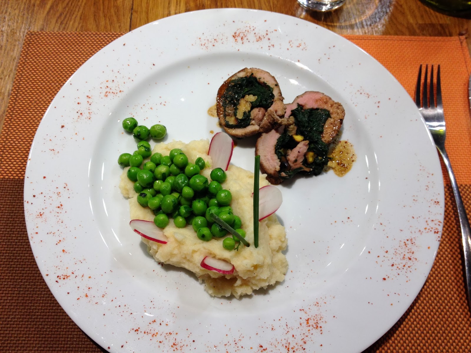Main course: veal with spinach and walnuts, mashed celeriac, and fresh peas. The celeriac was my favorite part. It completely surprised me. It tasted like creamy, buttery celery. It combined the freshness of celery with the richness of potatoes. Brilliant.