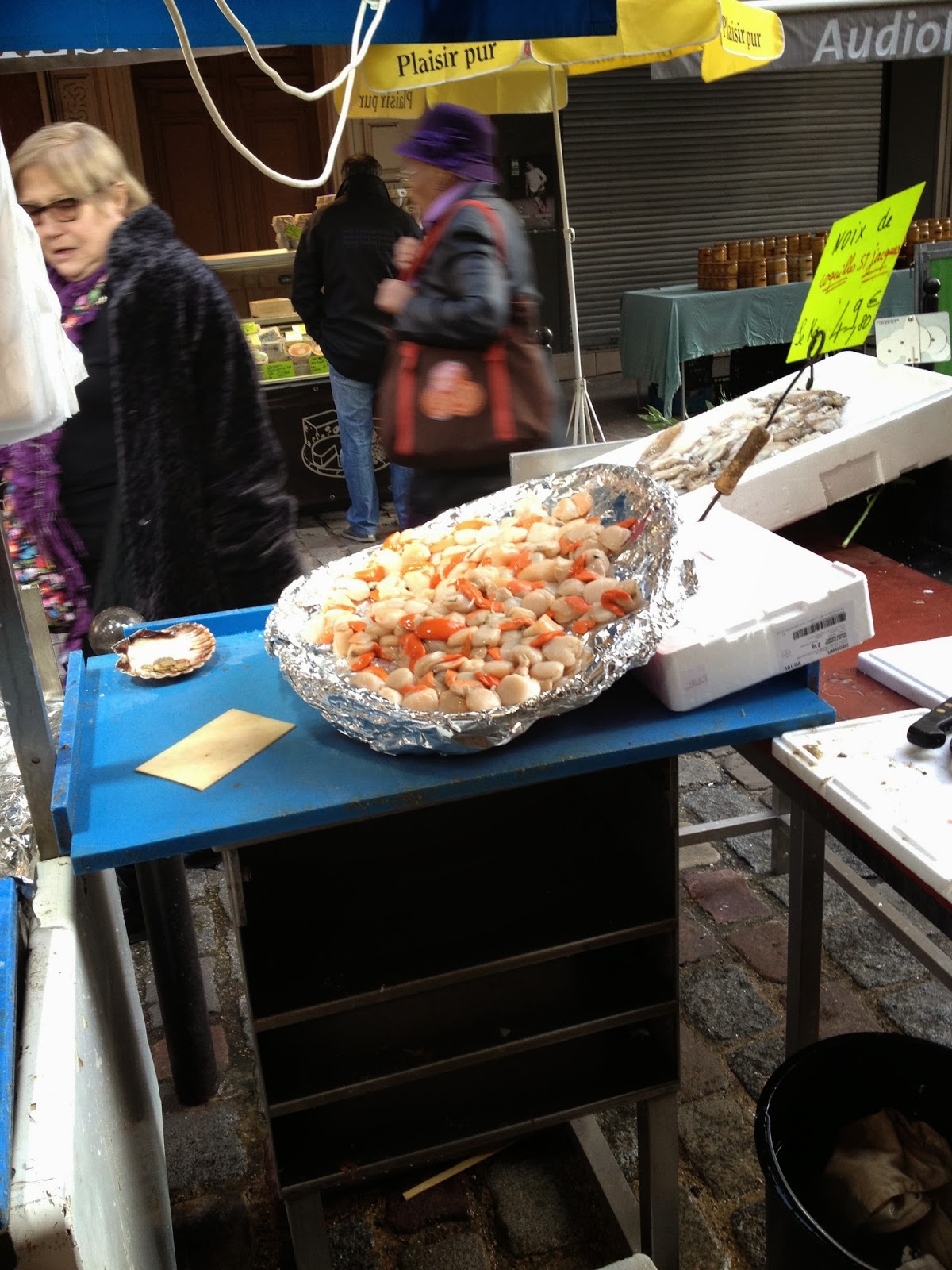 We met Chef Patrick at a Metro stop right by the school and a few blocks from a beautiful local market. Part of the class was grocery shopping with the chef and deciding on a menu based on the best products to be had that day. We were on the way to shop when the chef asked where we were from and mentioned he had lived in Louisiana for a while. Funny enough, Amber is from Shreveport, Louisiana. Hey! Chef Patrick owned a restaurant in Shreveport. When he said the name of his restaurant, Amber froze on the sidewalk, threw her hands over her mouth and tears came to her eyes. It was the restaurant that she and her husband had eaten at on their first anniversary and she had saved her entire paycheck to pay for that special dinner. Then we all got teary-eyed (yes, even me).