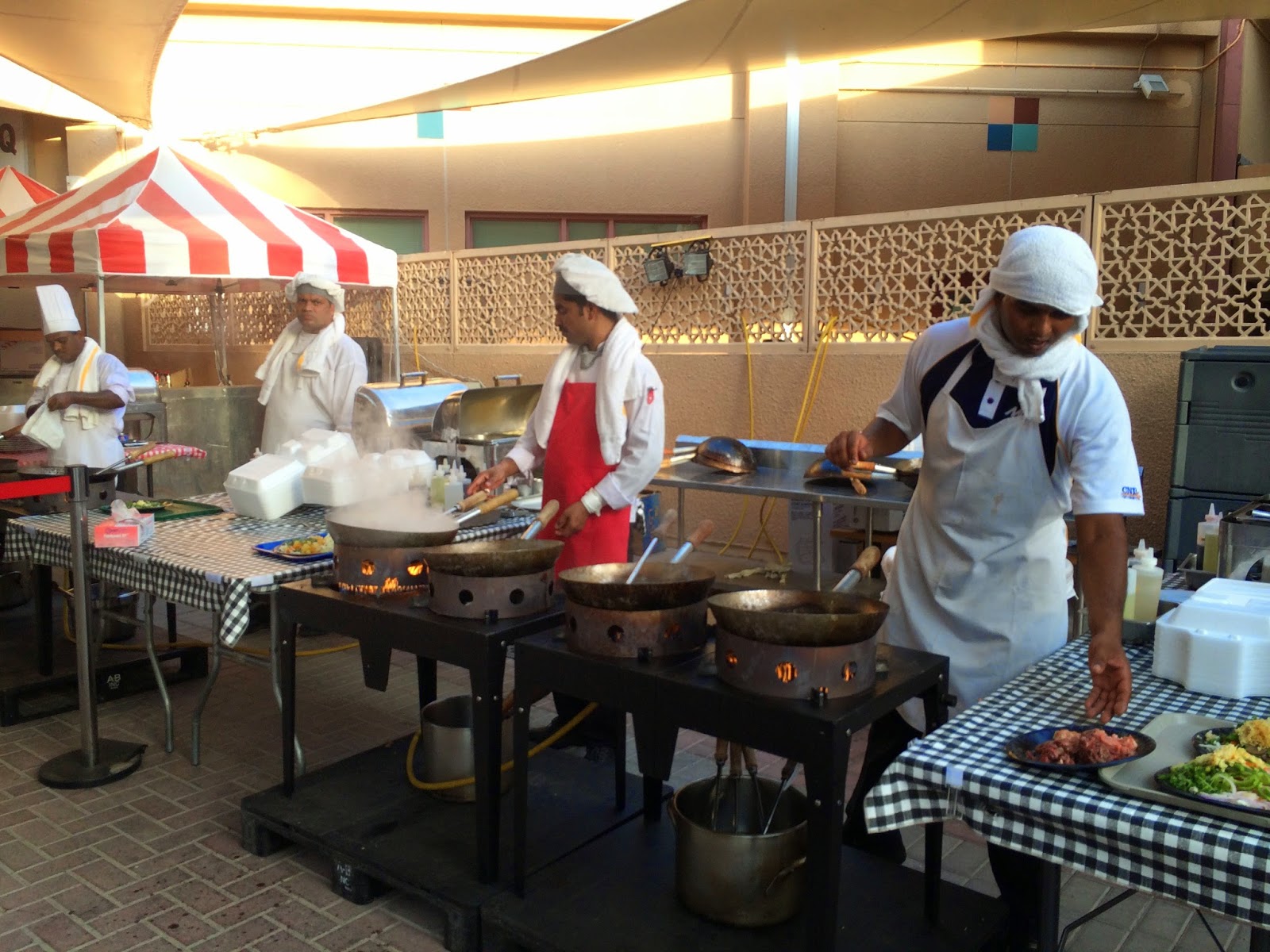 After a long week and an exasperating Thursday where nothing that I needed to do was accomplished (see above photo for me at the end of my rope), I was killing time on base waiting for Calvin to finish work so Caleb, Camille and I decided to do Mongolian BBQ. It’s a thing they do on base every Thursday, though we’ve only done it one other time. You take 2 plates and load them up: one has vegetables like napa cabbage, shredded carrots, pineapple, cilantro, mushrooms, garlic, hot chiles, ginger, etc. The other one is for raw meat. We pay by weight and then bring it out to the chefs who throw it in a wok with teriyaki, vinegar, sesame oil, or whatever seasonings you want and combine it with noodles or rice.