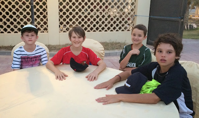 On the return trip we have an extra complication. Calvin flies back to Bahrain with us and then turns around a few hours later and flies back out with his soccer team to Germany for their Europeans tournament. So he has had to pack for Dubai and Germany in two separate suitcases and we’ll keep the Germany one in the car while we’re in Dubai. Then I’ll have to remember to hand over his passports before we separate. Today was spent packing my suitcase (traveling light — Caleb, Camille and me in a carry on size) and collecting Euros, Dirham, Dinar and Dollars for both trips (dollars and dinar for the things I had to buy today and the other currencies for the weekend and beyond).