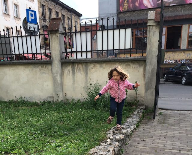 Happy 5th Birthday Camille! Let’s spend it walking around the Jewish ghetto and feeling sad for all the horrible things that were done to people as part of WWII/the Holocaust. We were trying to schedule this part of our trip around the weather and it turned out that her birthday was going to be good day for walking around outside, so that’s what we did. She already thinks of the trip to Poland and Germany as her “birthday trip” and has put in her request for next year’s birthday trip to be to “Atlantis and Crete.” She has no concept that a normal birthday stateside might just be a trip to Chuck E Cheese and a few extra tokens. She’s in for a rude awakening someday . . .