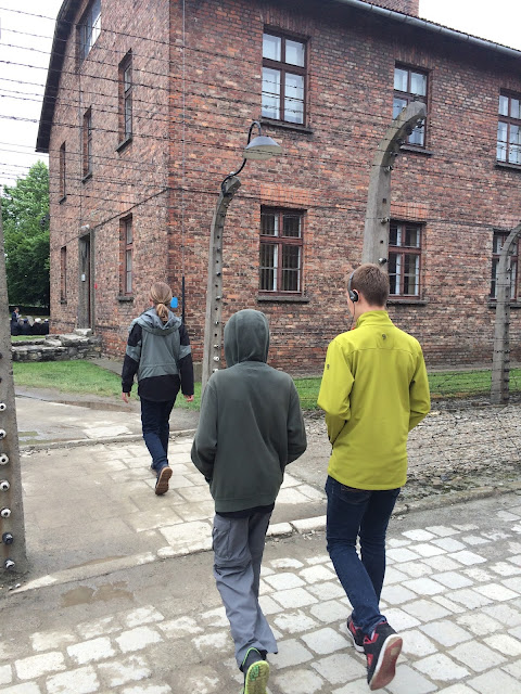 Auschwitz day. After the previous day spent in the Jewish Ghetto and at Schindler’s factory, I was really not looking forward to going. But how could I be so close to such an important piece of history and not see it for myself? So off we went, leaving the youngest two behind for a fun day with Nana and Poppa. In hindsight, they both could have gone and Caleb would have been fine and most of it would have gone over Camille’s head, but I was glad for the time to focus on it with the older two boys and I know the youngers had more fun with the grandparents. Win.Win.