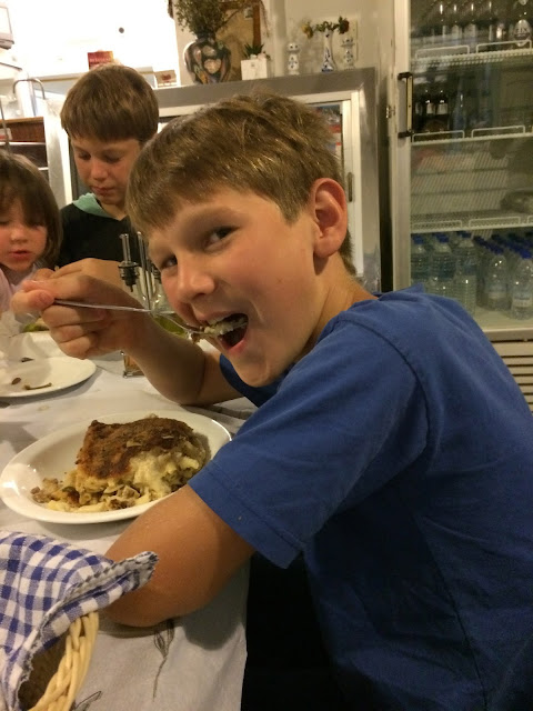 Today Josh and the boys are going to hike the longest gorge in Europe — Samaria Gorge, but not all 18k of it. Typically people will catch a very early bus in the morning (6 or 7am), arrive at the top of the gorge by 9 am and spend about 6 hours hiking down it. Then, because there is no car access, everyone waits at the bottom, on the coast, for the ferry to shuttle people back to civilization at the end of the day.
