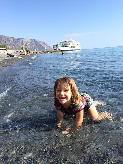 We are doing the hike the “lazy way,” starting at the bottom. (That’s actually how it’s referred to on Trip Advisor.) Wake up at 8am, catch the 9am ferry, walk up the gorge as far as they want and then hike down and take the ferry home. Meanwhile, Meels and I are doing it the truly lazy way as we camp out on the beach for the day under an umbrella, drinking fresh juice and reading a book. It’s my gift to all of us because as much as I’d like to hike and see the gorge and Camille is a surprisingly nimble hiker, she is unpredictable in her stamina.This way the boys can go as fast as they want and cover more ground and the only tears will be about whether she can have another fresh squeezed orange juice with her lunch.
