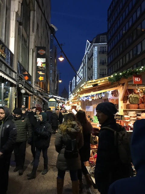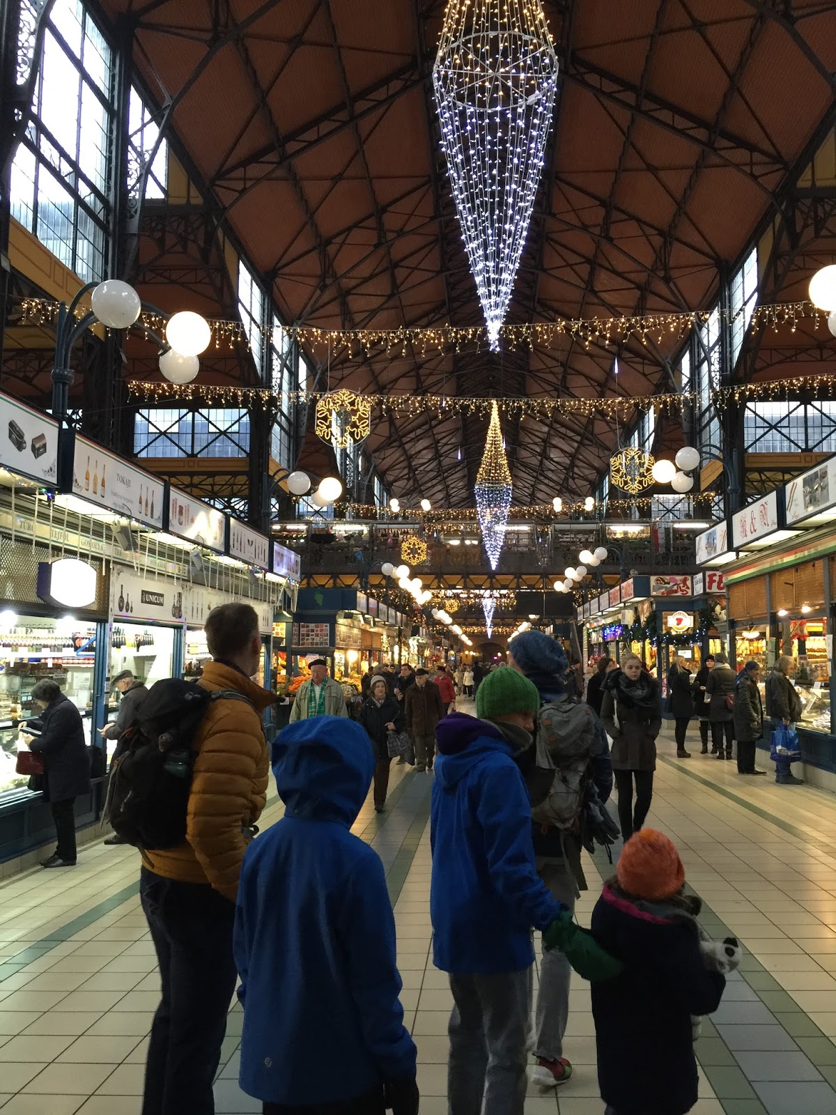 Our apartment is right around the corner from the Grand Market — it’s like a giant farmer’s market with handicrafts on the second floor (spices, vegetables, cheeses, cured meats, souvenirs, etc). It’s closed for the evening, but lit up for Christmas. We’ll go there tomorrow.