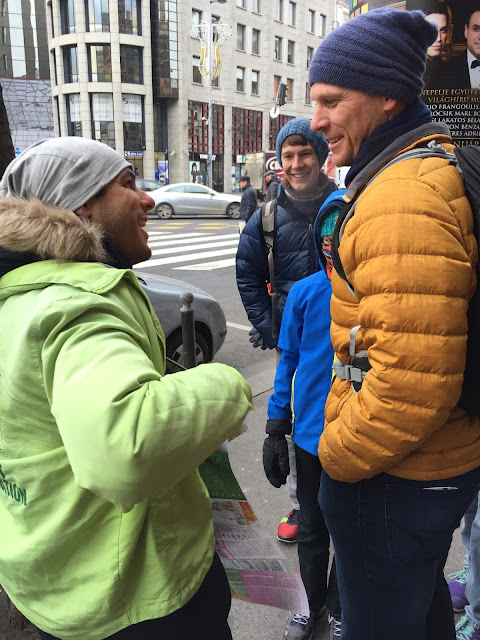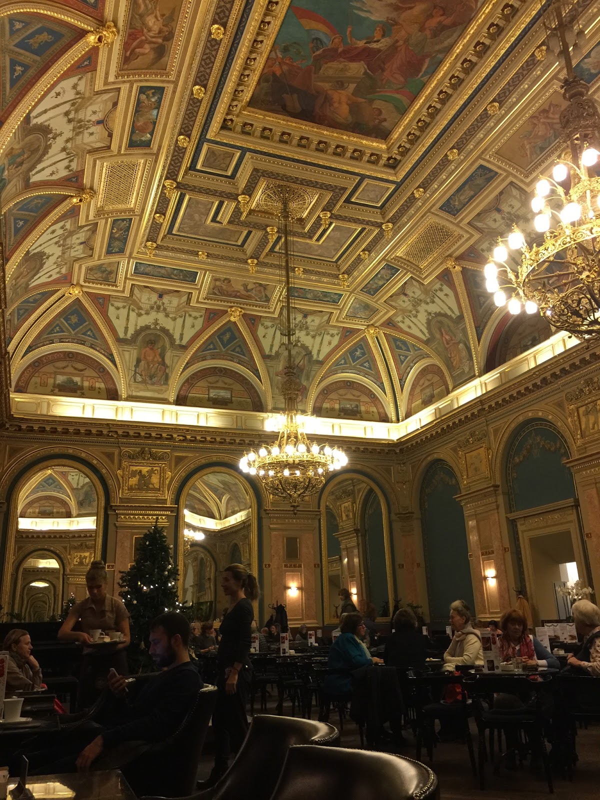 After some time in the indoor pool it was time to brave the cold and head outside to the ultimate hot tub. Steam rising, hot jets flowing from below, a warm fountain spraying from above . . . I think we stayed for an hour, moving from area to area around the giant pool, watching the old men playing chess (on the board that was in the pool), debating whether the statue was of a naked lady nursing a goose or if the goose was just nuzzling her armpit (really, European sculptures are weird), and taking a break from the hot water to do a long, freezing cold lap around the entire perimeter of the 3 pools before hopping back in to warm up again.