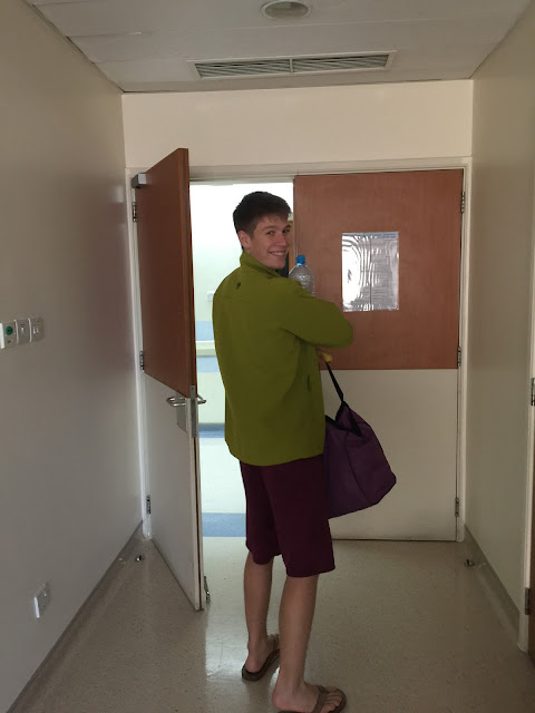 All that was left for me to do was to pester Calvin about drinking the “cloudy water” that they had given him (some sort of rehydration solution) and to encourage him to eat as much as possible.