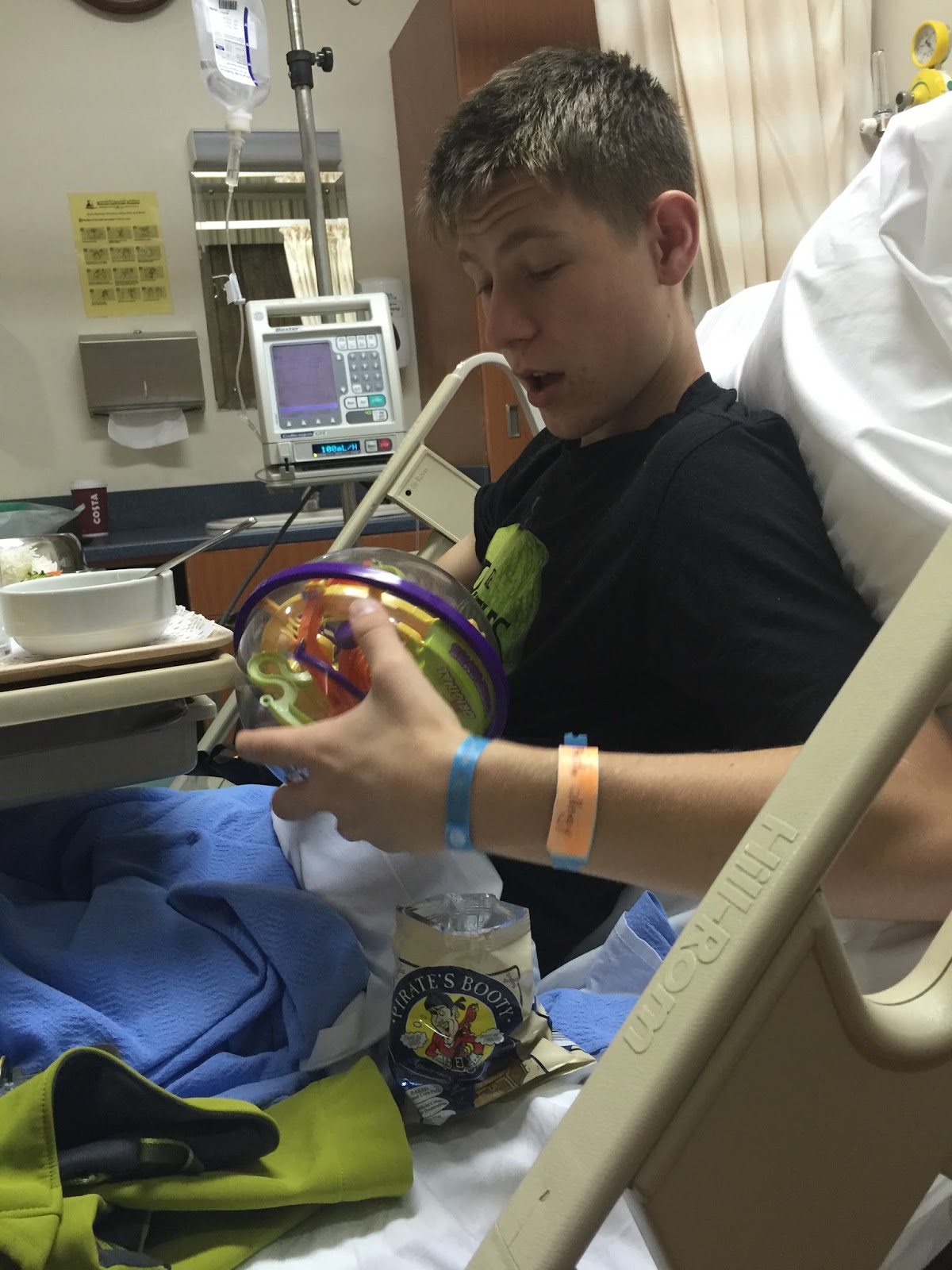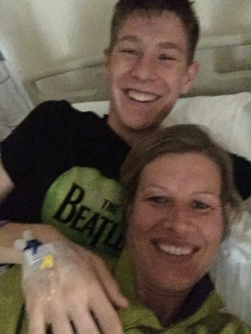 And I found out a friend’s son was in the hospital at the same time with similar symptoms so he came and visited a few times. IV buddies.