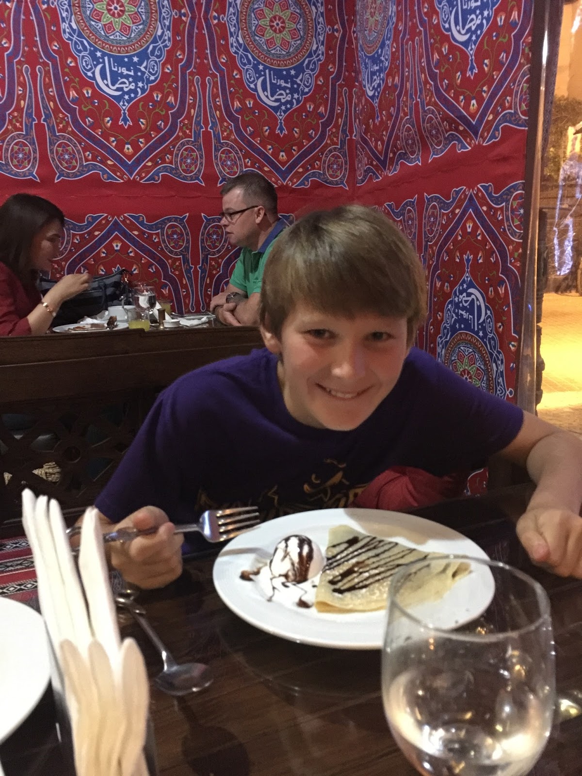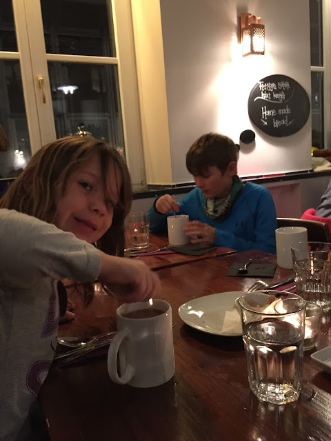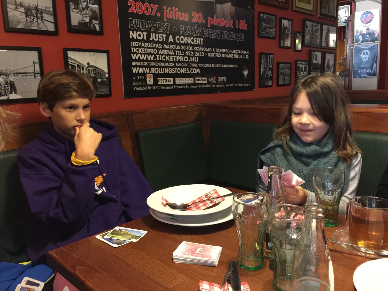 We went back to the apartment, warmed up and the kids played cards until it was time for dinner. Then we made them WALK, WALK, WALK some more to a restaurant that Josh had read about in the Jewish district.