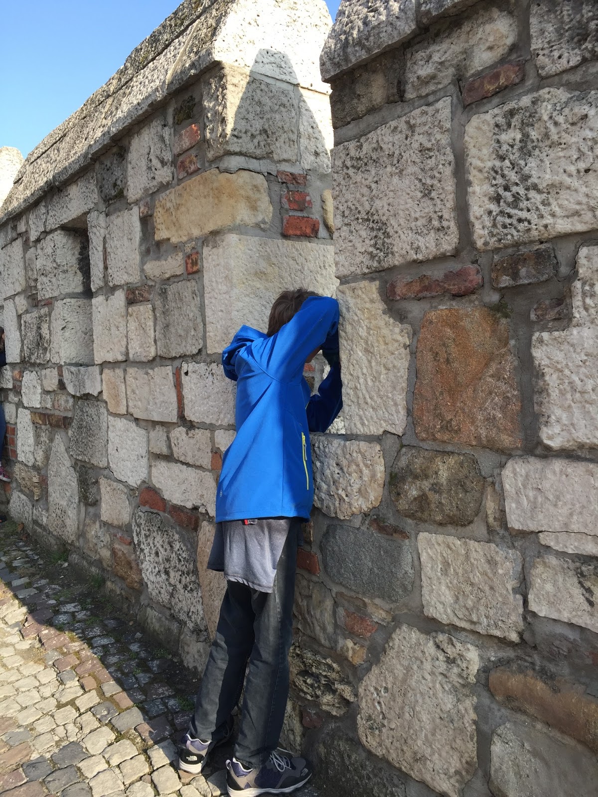 Racing along the wall to reach the top! There really was a race and then an argument about who won and who cheated and I don’t know what else because I wasn’t crazy enough to run up the hill after having walked for miles already.