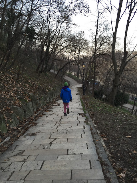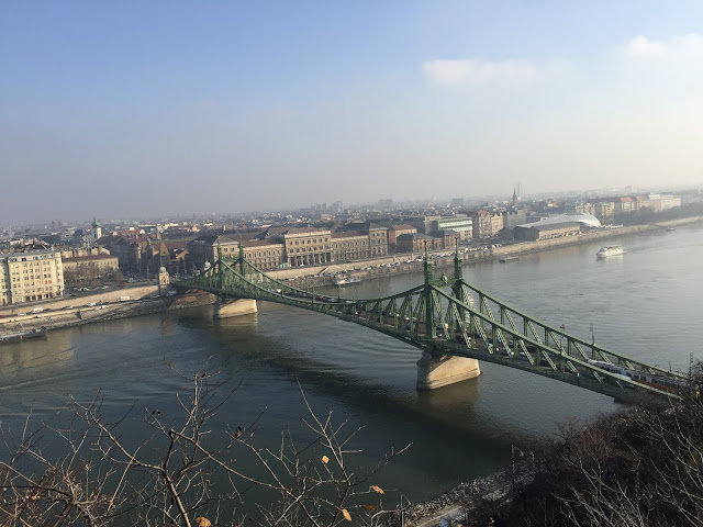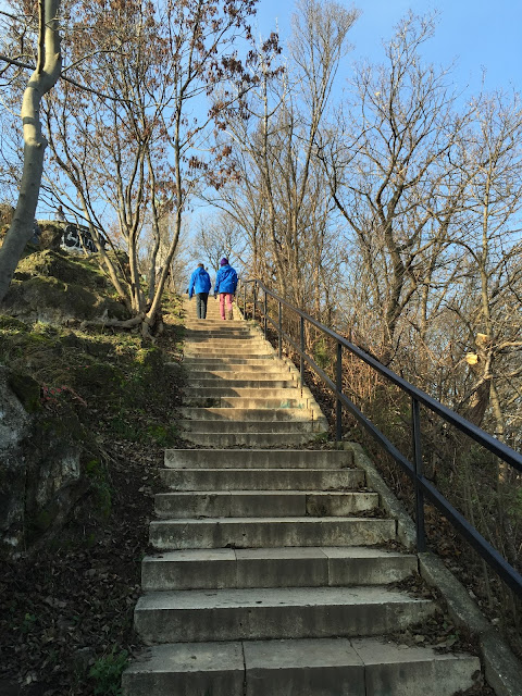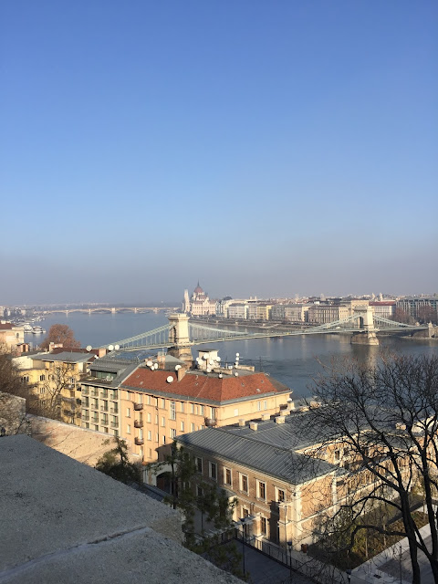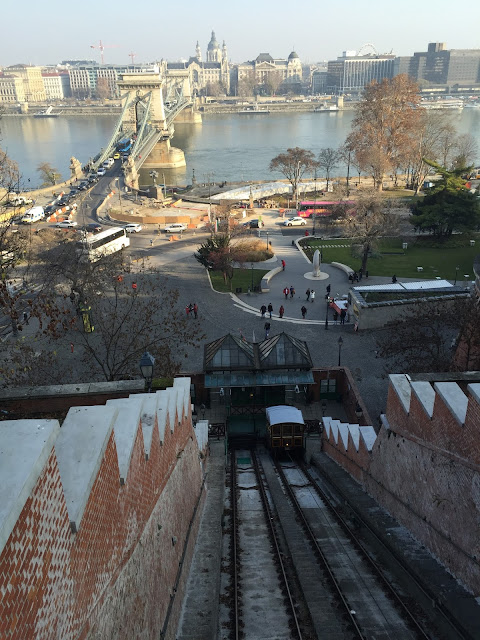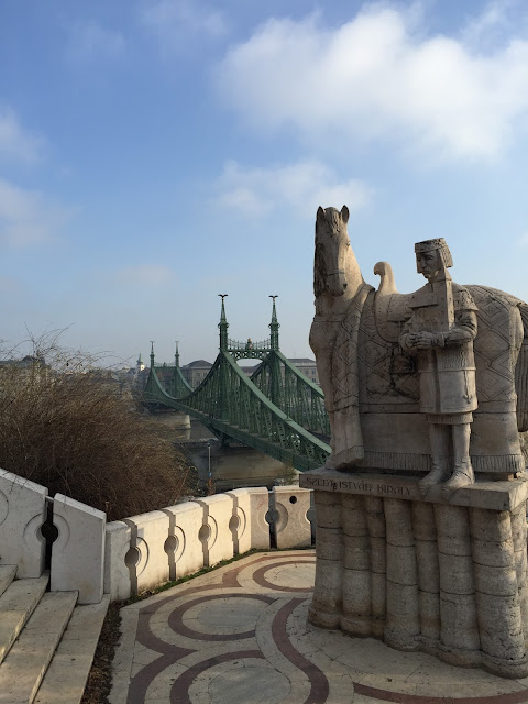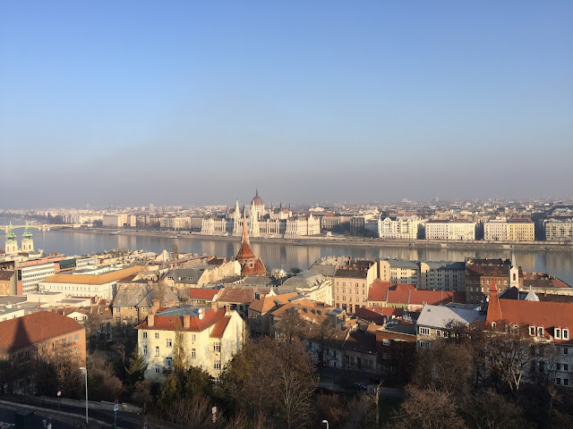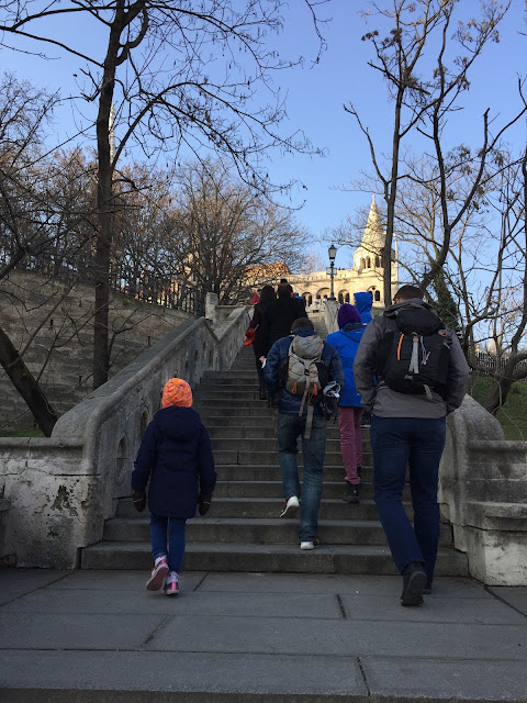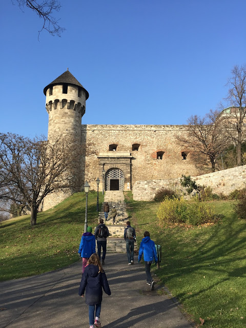 The reward for our exertion was a beautiful clear view of the river and Pest side of the city — and then it was time for more walking. Today was full of up, down, up down.