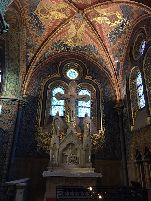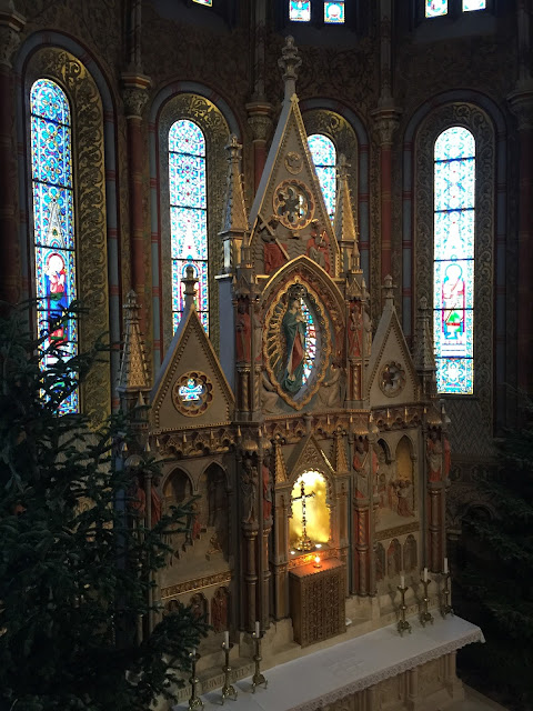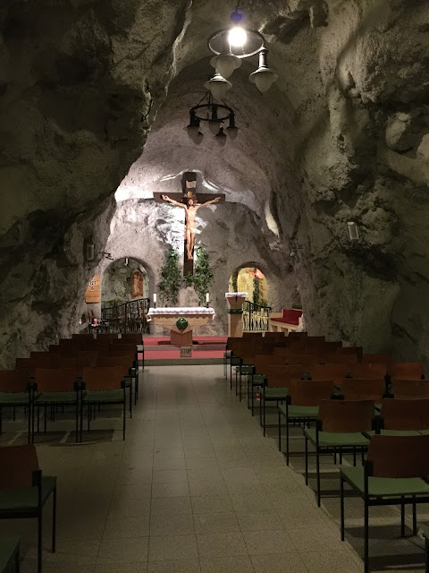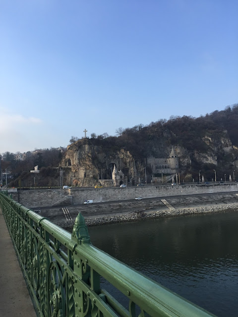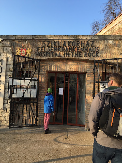 Because of the hot springs and the rock formations, the hill side of the city (Buda) contains a network of caves. This cave church used to be a monastery, but today is a museum. With the audioguide it was a bit like going to church with a sermon and everything. It was a lot bigger than we expected, with one cave room leading into another and several different chapels, but it was too dark inside to capture much more than the main room.