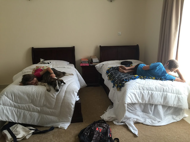 Tomorrow looks to be more of the same. Josh will go to work. We will stay home and take turns going to the gym in our compound (I make myself go and they beg to go), cleaning the house, watching TV, and waiting around for him to come home. Josh slipped right into his place in the world and now we have to figure out where we fit. For now, we wait and settle.