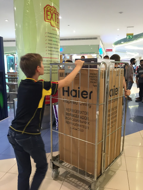 I decided to go and we got through it (meetings about our housing, embassy information, safety briefs, ID badges, etc) and now that’s behind us. Today Josh went to work and we all stayed home since we don’t have a car that I’m allowed to drive. My car is still sitting in Bahrain even though we shipped it over 2 weeks ago so who knows when I’ll be back behind the wheel. I’m sure we could rent one, but I am trying to stop the financial bleeding rather than increase it. Thankfully the house is furnished and comes with some basic appliances (coffeemaker, microwave), dishes, and linens so I don’t have to buy all of those while we wait for our stuff to arrive, but I need wastebaskets, a kitchen trash can, some laundry baskets and other basic household items (cleaning supplies, paper goods, pantry items, etc).