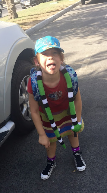 And she was happy to put the first week behind her! The snake was her prize for making it to Thursday. Working on two phobias at once. Thankfully she has adopted the snake as the school mascot with much greater ease than I had hoped. (She used to not even be able to be in the same room as a fake snake or look at a snake picture in a book).